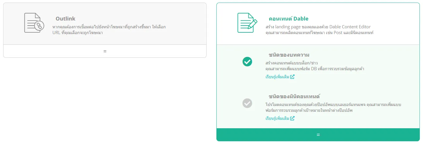 บนระบบของ Dable คุณสามารถเลือกใช้ template สร้าง Landing page "ประเภทบทความ"
