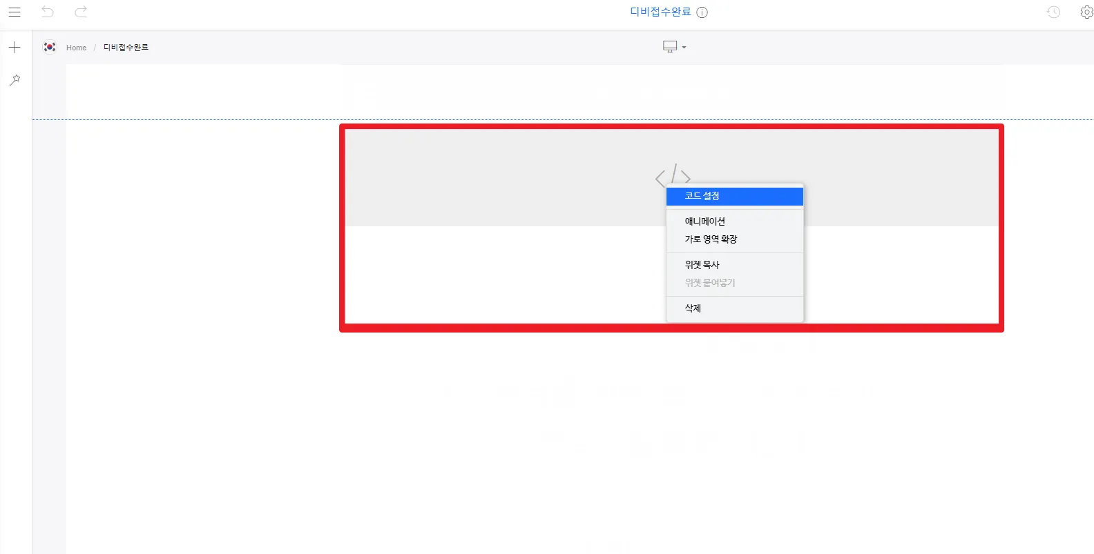 경로: 특정 페이지 - 코드 위젯 - 마우스 우클릭 - 코드 설정 - 데이블 스크립트 설치