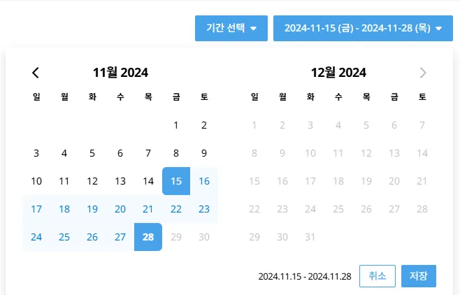 오른쪽 상단에서 조회 기간을 선택합니다. 조회 기간의 기본 값은 최근 14일입니다.