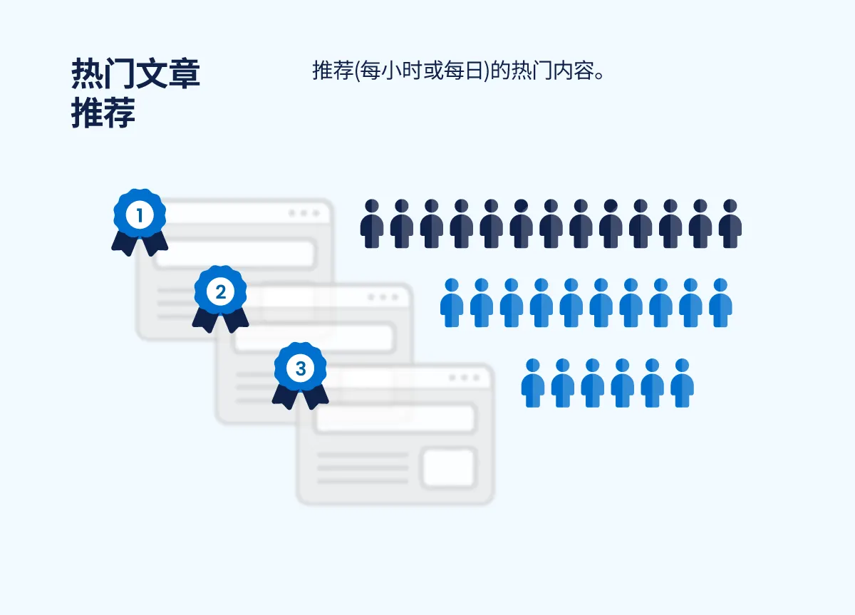 即时推荐网站中最受欢迎的内容。推荐每小时或每天的热门内容给没有特别兴趣的读者,可以增加其在网站上所花费的时间。