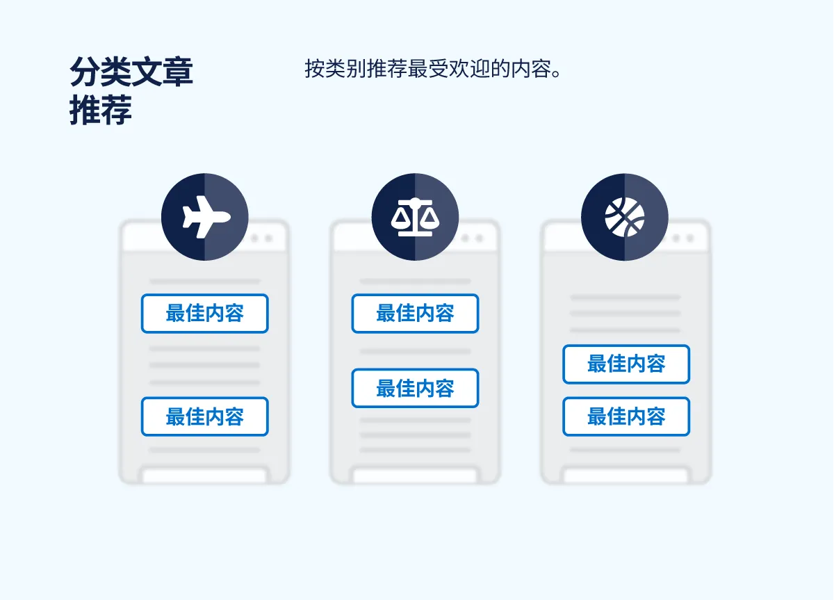 推荐与读者阅读的文章同类别里最受欢迎的内容。例如,推荐政治类中最受欢迎的内容给阅读政治类文章的用户、推荐经济类中最受欢迎的内容给阅读经济类文章的用户。