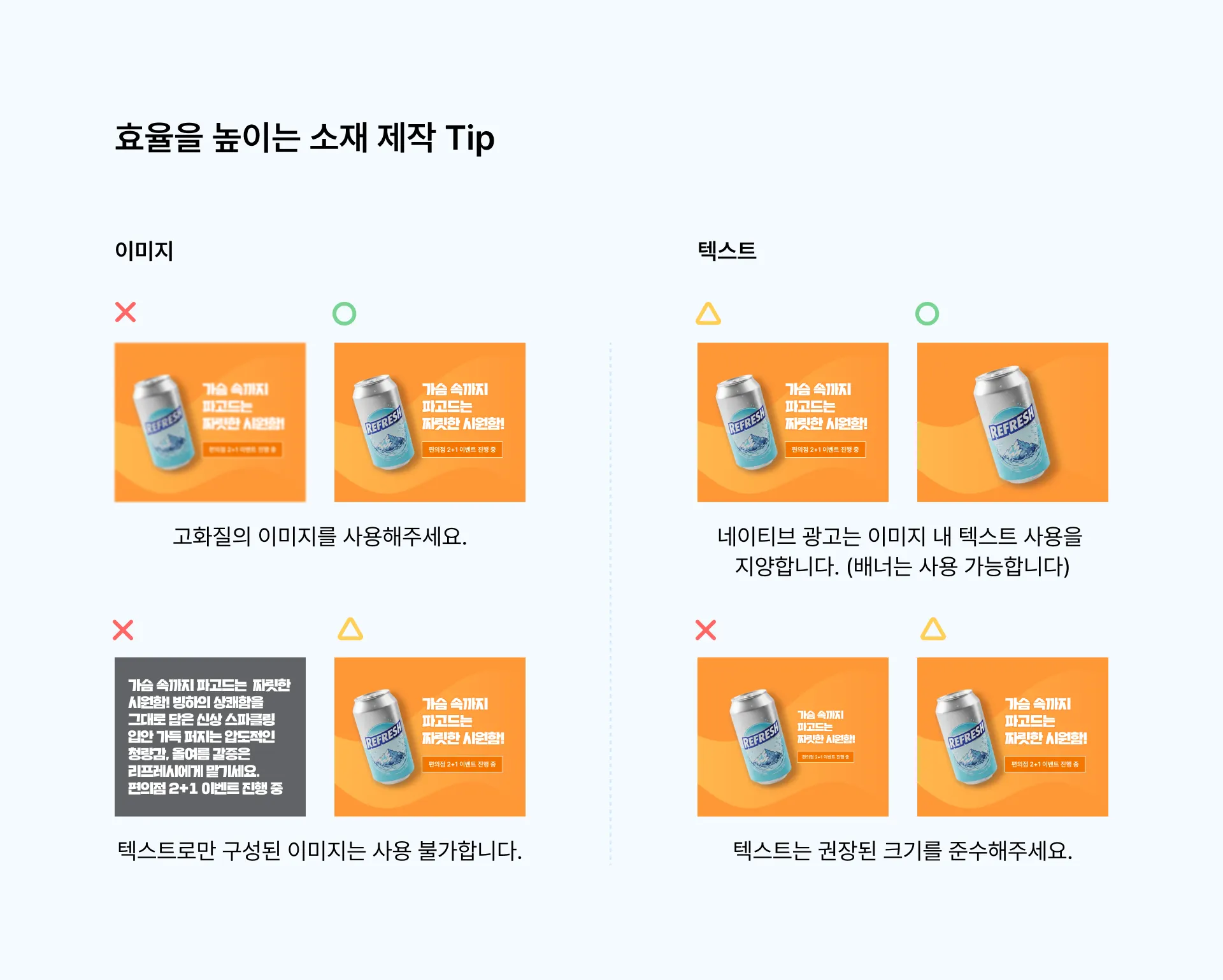 네이티브 : 텍스트 비중이 매우 높은 섬네일 이미지는 사용 불가합니다. (50% 이하 권장)