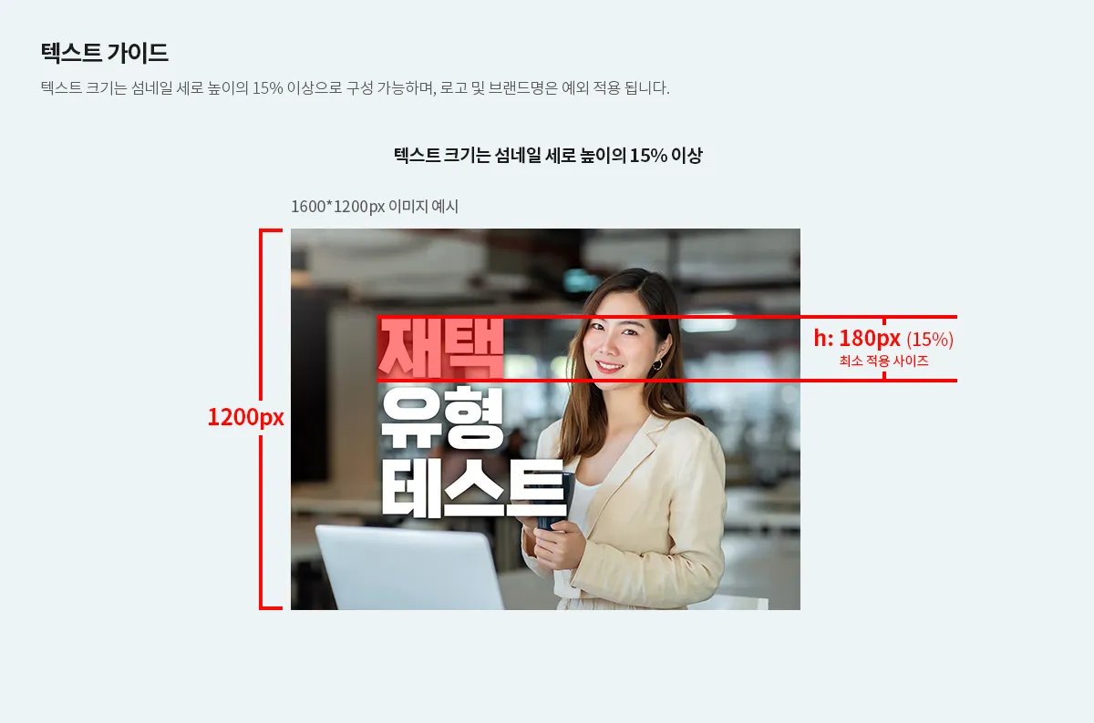 텍스트 크기는 섬네일 세로 높이의 15% 이상이어야 합니다.