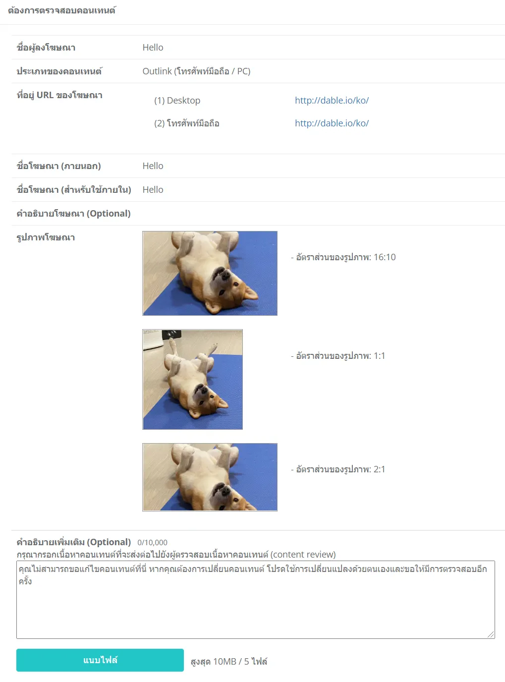 เมื่อสร้างคอนเทนต์แล้ว สามารถนำไปใช้ในหลายแคมเปญได้ Dable อย่างไรก็ดี ต้องส่งคอนเทนต์โฆษณาให้ทีมงาน Dable ตรวจสอบว่าเนื้อหาเป็นไปตามนโยบายของ Dable หรือไม่ เฉพาะเนื้อหาที่ได้รับอนุมัติเท่านั้นที่จะให้บริการบนไซต์พันธมิตร