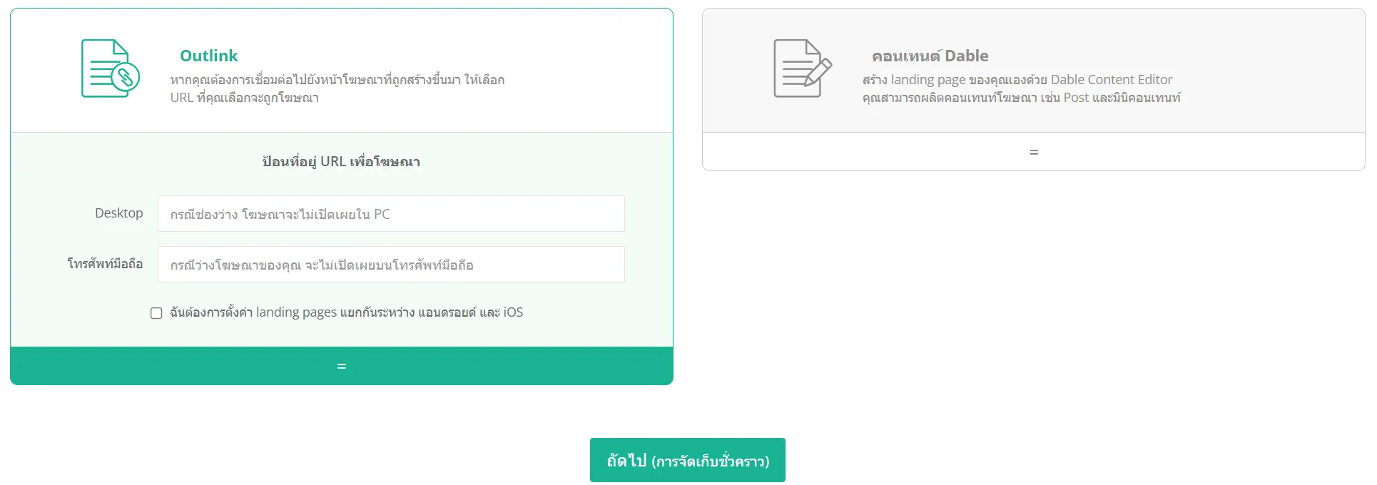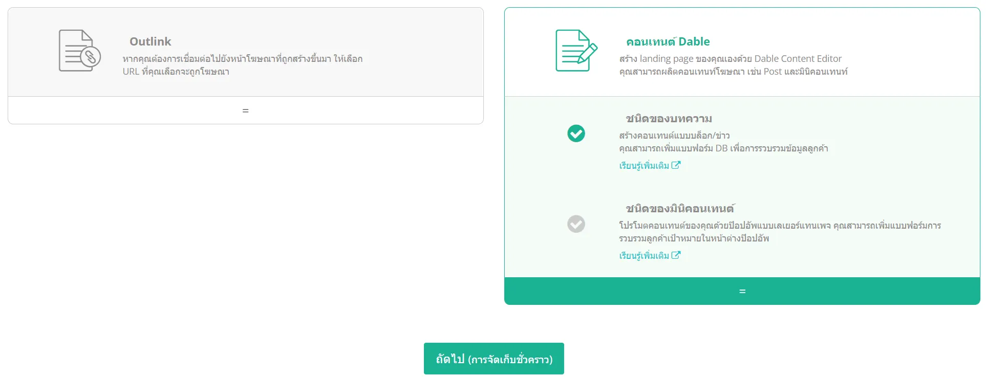 เลือกหนึ่งในประเภทคอนเทนต์ (Outlink หรือ Dable คอนเทนต์)