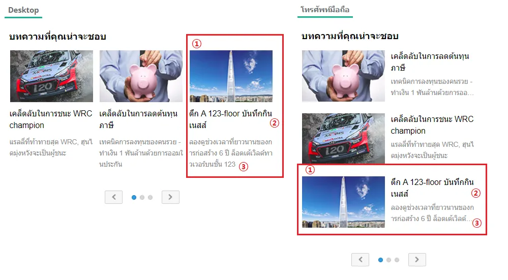 รูปภาพ: เพิ่มรูปภาพขนาดย่อ รูปภาพทั้งหมดควรเป็นไปตามคู่มือการสร้างรูปภาพของ Dable