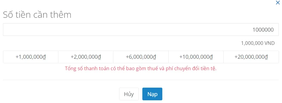 Lựa chọn số tiền quý khách muốn nạp thêm