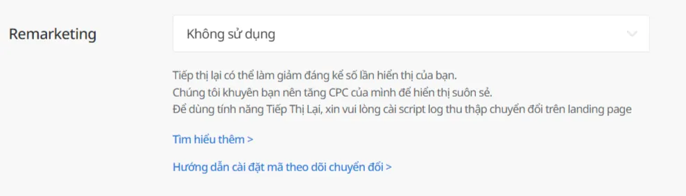 Remarketing là một tùy chọn nhắm mục tiêu có thể được đặt cho các hành động chuyển đổi được theo dõi bởi tập lệnh Dable. Một số tình huống có thể xuất hiện dựa trên các tập lệnh chuyển đổi được cài đặt trên trang đích.
