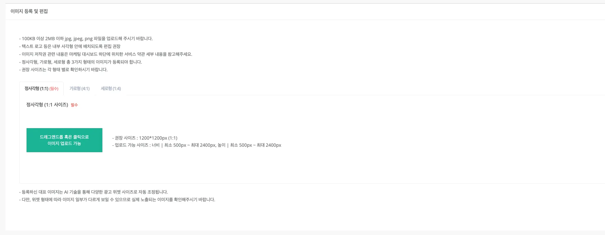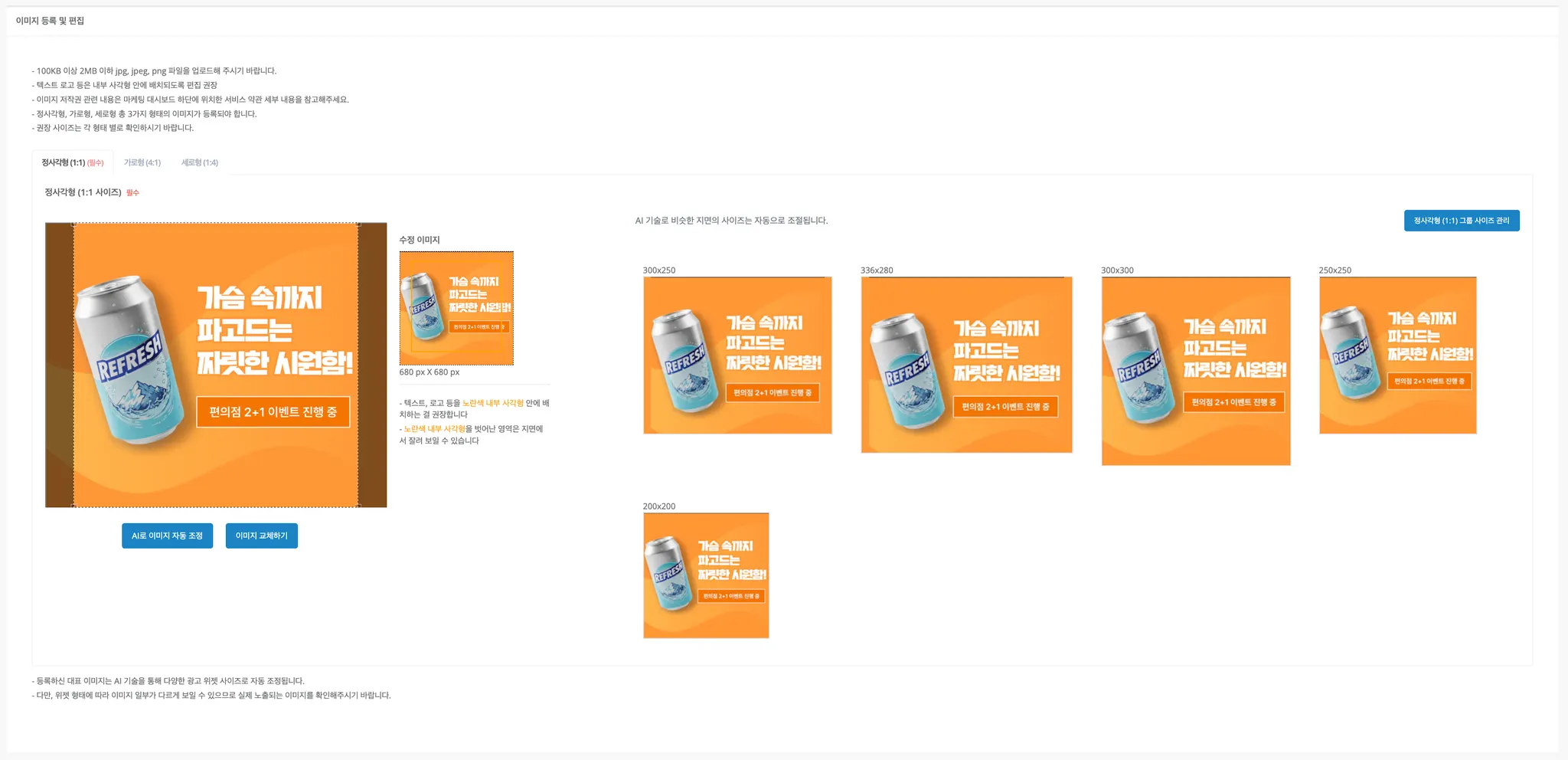 우측에 표시되는 ‘수정 이미지’를 통해 실제 노출되는 광고 이미지를 확인할 수 있습니다.