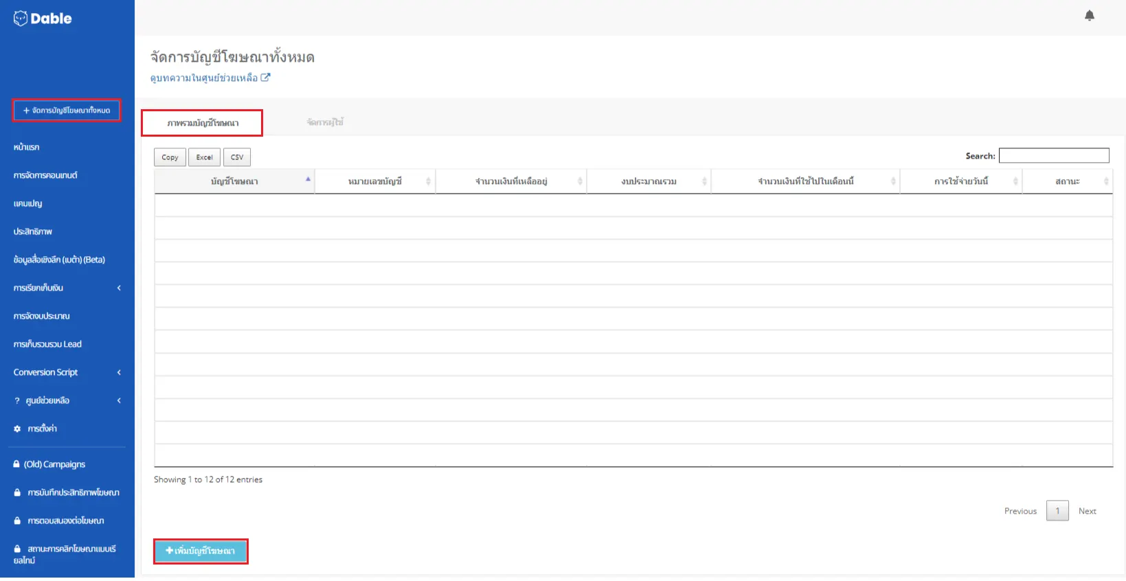 คลิก '+ จัดการบัญชีโฆษณาทั้งหมด' ที่มุมซ้ายบน