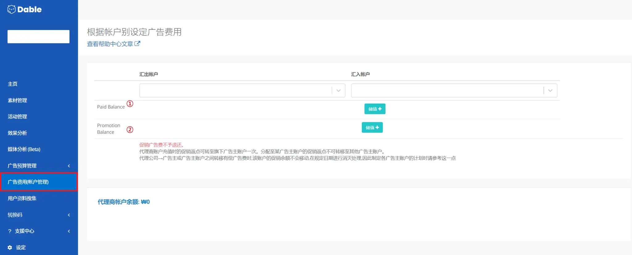 ② 促销余额:Dable已提供的促销。