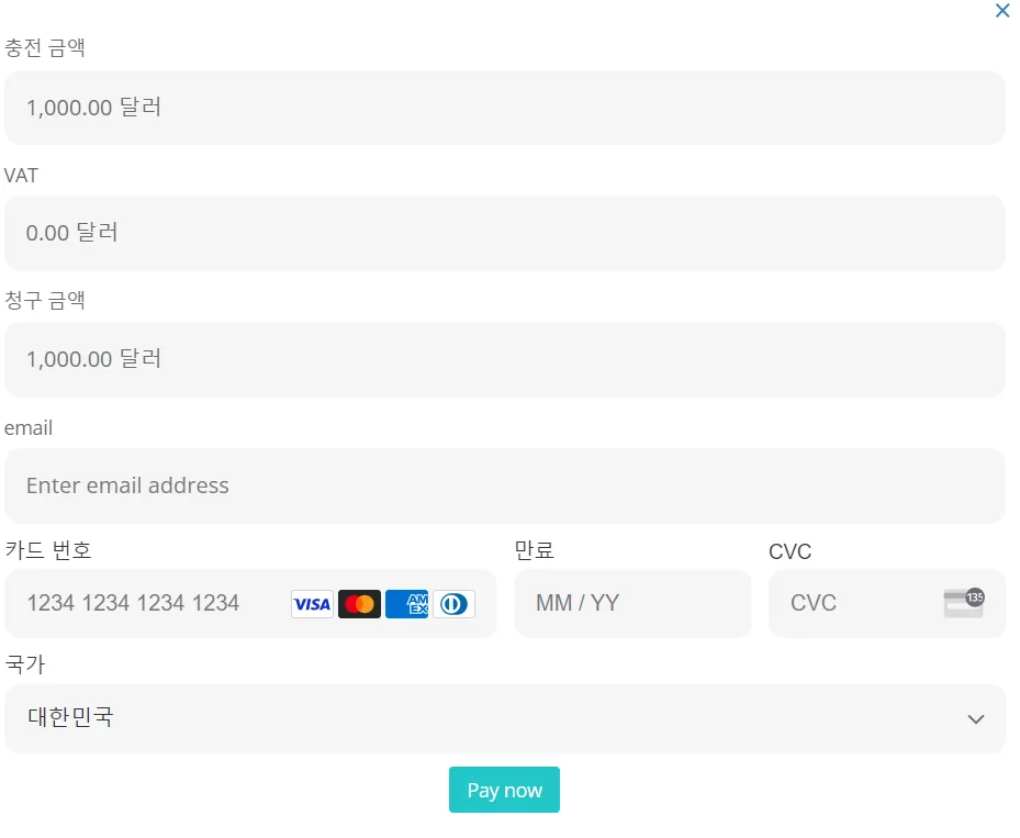3. 그 후 카드 정보를 입력할 수 있는 페이지로 이동이 됩니다 (카드번호, CVC, 등)