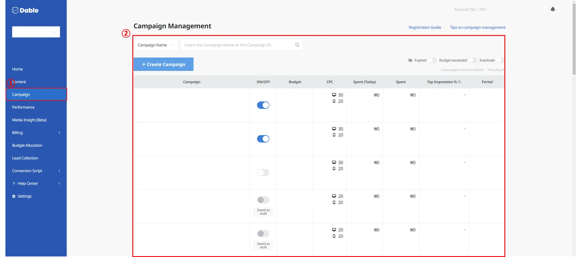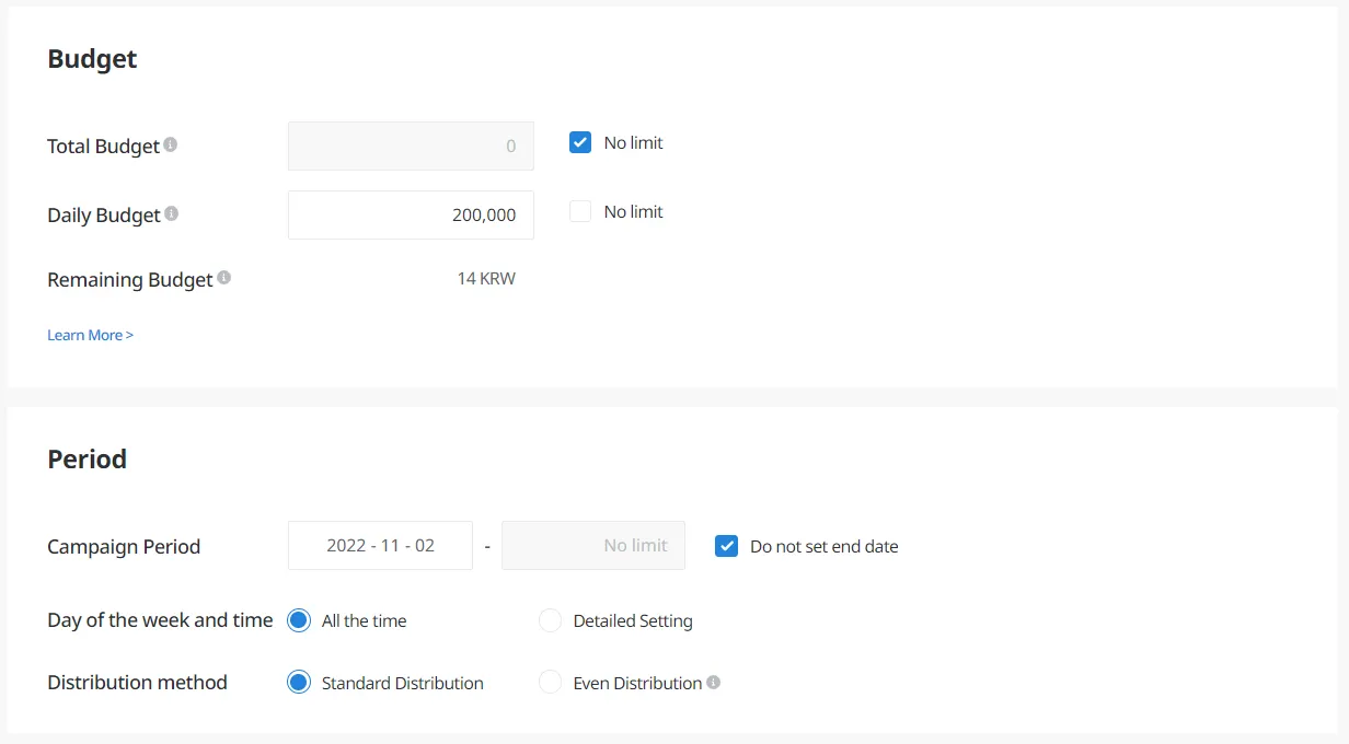 Daily Budget: Set maximum amount of budget to spend in a day. Minimum daily budget is more than 10,000 KRW.