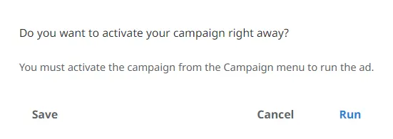 After all is set, click ‘Save’. You need to activate your campaign in order to show your ads.