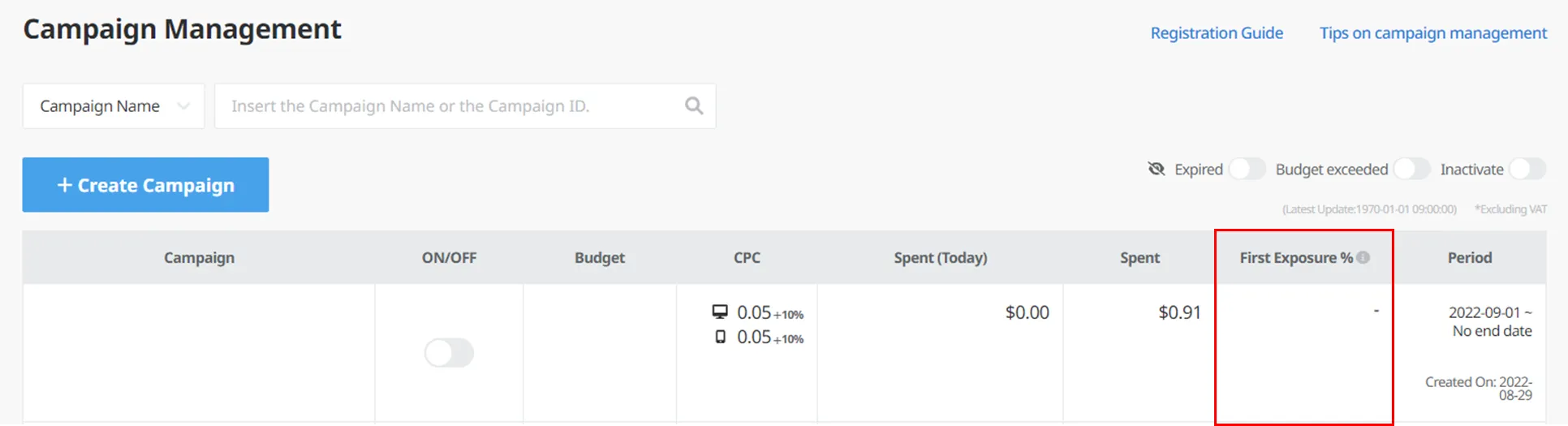 First Exposure % is a supplementary measure to understand your campaign’s performance. To learn more on how to use these data when managing campaigns, click here.
