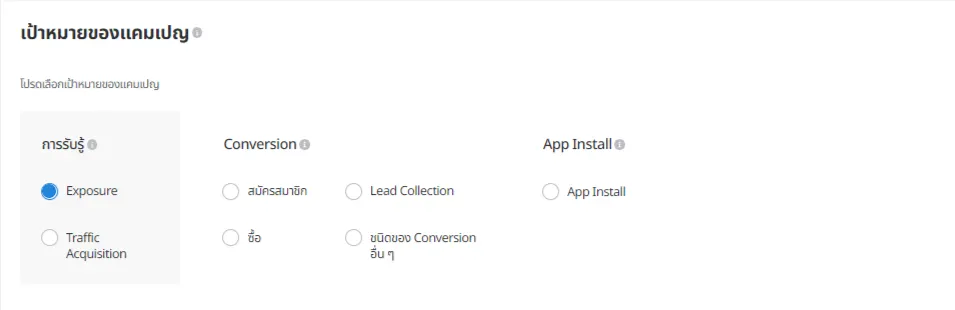 ในหน้าเมนูสร้างแคมเปญ คุณสามารถกำหนดการตั้งค่าทั้งหมดที่เกี่ยวข้องกับการจัดการแคมเปญ รวมถึงเป้าหมายแคมเปญ ประเภทแคมเปญ (เนื้อหาเดียวหรือหลายรายการ) งบประมาณ ตัวเลือกการเปิดเผยข้อมูล รีมาร์เก็ตติ้ง ภูมิภาค ฯลฯ