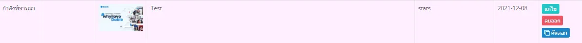 สถานะของเนื้อหาจะถูกตั้งเป็น 'กำลังตรวจสอบ' พร้อมกับพื้นหลังสีชมพู คำร้องขอการตรวจสอบจะถูกดำเนินการไปตามลำดับที่ได้รับมา