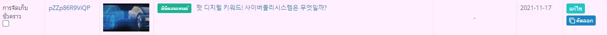 เนื้อหาที่ถูกบันทึกจะแสดงในหน้าเนื้อหาพร้อมกับพื้นหลังสีชมพู สถานะจะถูกตั้งเป็น 'บันทึกเป็นแบบร่างแล้ว' กรุณาคลิกปุ่ม 'แก้ไข' เพื่อสร้างเนื้อหาต่อ