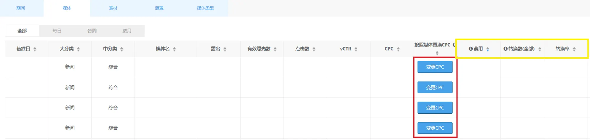 广告活动成效在各媒体类型可能有所不同。如果是这种情况,请尝试仅在特定媒体类别中曝光广告或提高该类别的CPC。