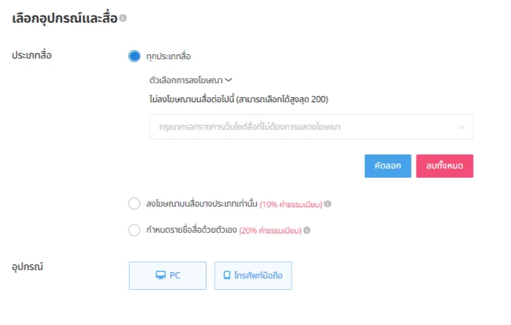 ② แสดงโฆษณาไปยังประเภทสื่อที่ต้องการเท่านั้น
