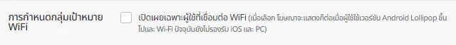คุณสามารถเลือกแสดงโฆษณาไปยังผู้ใช้งานที่เชื่อมต่อ WiFi ได้ด้วยการกำหนดเป้าหมายตาม WiFi