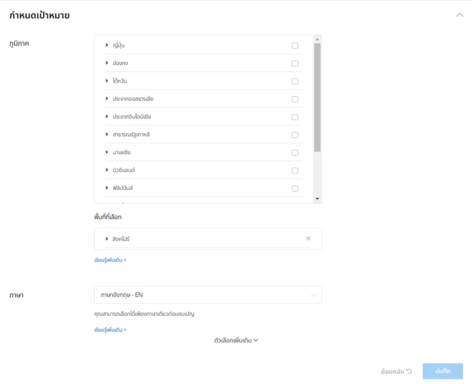 คุณสามารถตั้งค่าการกำหนดเป้าหมายตามภาษาขณะสร้างแคมเปญใหม่ได้