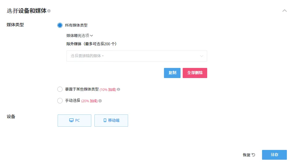 广告将仅投放到选定的媒体网站,选择您希望曝光广告的网站。